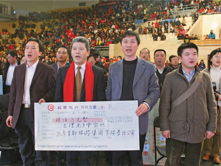 2008年2月,党委副书记、总经理 刘毅代表c币钱包员工和企业,为抗 击冰雪灾害捐款400万元